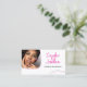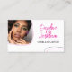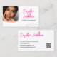 Minimalist photo business card with retro lines in magenta and black against a white background and your name in a rough signature script. Personalise with your photo and a QR code. Influencer QR code business card in white with magenta details and your photo.