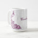 Enjoy your morning coffee with a Magenta Peacock Personalised Coffee Mug. Mug design features a vibrant magenta peacock, a soft white leaf vine against a light grey grunge background with an area to personalise with your name. Additional gift items available with this design as well as a variety of colours.