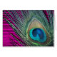 Bright still life photography of a peacock feather. The bright pink background with the dark lines makes a really neat effect.