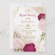magenta pink flowers green leaves bridal shower invitation
