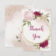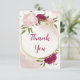 Beautiful wedding thank you card featuring magenta and pink flowers and green leaves