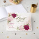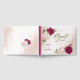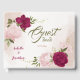 Beautiful wedding guest book featuring magenta and pink flowers and green leaves