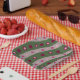 Square Paper Plates printed with Magenta Pink Green Springtime Polka Dot Patterned And Wavy Vertical Striped Design artwork design illustration by TheFabricSeal at Zazzle #ZazzleMade https://www.zazzle.com/store/thefabricseal