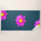 Magenta Pink Lotus Flowers on Blue Beach Towel
