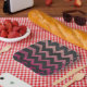 Trendy grey grey pinkish purplish red Retro vintage geometric stripes classic Zig zag pattern gift for her.