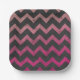 Magenta pink red ombre dark grey chevron pattern paper plate