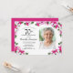 An elegant frame of watercolor pansies surrounds your 70th birthday party details and photo. The bright and colourful magenta, pink and white floral is perfect for a spring or summer birthday celebration. All of the text is editable so you can create just the right vibe. The back of the invitation is a vibrant magenta. This invitation is part of the Pink Pansy collection. You the templates to create a unique invite package and coordinating party supplies.