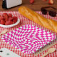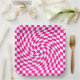 Magenta Pink & White Warped Chic Chequered Pattern Paper Plate