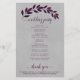 These wedding programs are elegant and tasteful, while still being budget friendly. The hand painted watercolor design features a sprig of deep magenta or plum purple leaves on a marbled grey background. The typography features lacy script calligraphy, and there is room for details on the ceremony, the bridal party, and a short thank you.