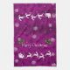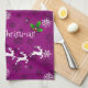 Magenta Santa's Sleigh and Reindeer Kitchen Towel