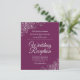 These affordable, budget friendly wedding reception invitations are the perfect choice for class, style, and beauty on a budget. Designed for guests who are invited to the reception but not the ceremony, they feature a cassis purple, magenta, or berry coloured background with ornate silver faux foil frills in the corners. The typography includes fancy pale grey script lettering for a style that is at once simple and elegant. Wonderful way to invite your friends and family to share in your joy on your special day without breaking the bank.