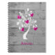 Create a unique and one of a kind journal with a Magenta Tree of Hearts Personalised Spiral Photo Notebook. Notebook design features a a blooming hearts tree against a grey wooden background with an area to personalise with your name. Additional gift items available with this design as well as a variety of colours.