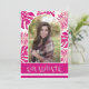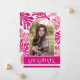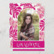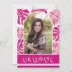 Modern magenta pink tropical leaves Class of 2023 arch with photo graduation announcement. It features the text "GRADUATE", a photo in an arch and tropical leaves in fuchsia pink and white.