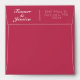 Pretty, modern, minimalist and trendy wedding envelope features Viva Magenta background with white customisable text blocks in modern fonts on back flap.