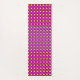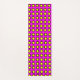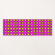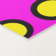 Pattern design of yellow circles, with black borders on a solid magenta background.