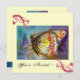 MAGIC BUTTERFLY WITH RED FLORAL SWIRLS ,blue cream Invitation