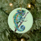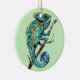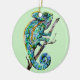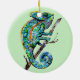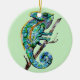 a decorative ceramic ornament featuring a traditional watercolor and ink chameleon in blue and green colours
