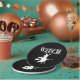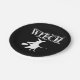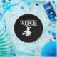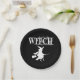 A set of paper plates with a white icon shape of a flying witch on a broomstick and a black spiderweb decorated text above on a black background. A stylish spooky design not only for your Halloween party but also for every fun fairy, magic or horror themed party throughout the year. To match the background colour of the paper plates with your own party colour scheme simply click the 'Customise it!' button and select a colour in the 'Printed Background Colour' chart.