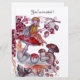 Colourful,fancy magical follet of enchanted woods sitting on a red mushroom surrounded with purple yellow brown autumn leaves ,chestnuts,berries.Watercolor painting 2010 by Alessandro Lumini. Elegant ,classy, unique design easy to customise as a wedding,nuptial announcement ,place cards, thank you ,baby showers,child's birthday parties,bridal showers,sweet 16 ,anniversary,romantic engagement showers, christmas,holiday ,office ,family reunions ,new year's day eve celebrations,gatherings,school graduations,concert,recital or just about any event you wish!