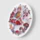 MAGIC FOLLET OF MUSHROOMS Whire Red Floral Fantasy Large Clock