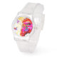 The stunning colours of Janet Weight Reed's watercolor "Magic in All Sizes" will make this watch a conversation starter! A perfect pick-me-up accessory when you're on the go or need a splash of colour for your outfit.