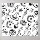 Magic things, ink drawing on a white background. Seamless pattern
