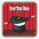 A graphic illustration of a magician’s hat with a red curtain background by artist/designer Charmaine Paulson on a custom sticker.  The sticker has a text template for your personalisation. ©2013charmainepaulson