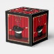A graphic illustration of a magician’s hat with a red curtain background by artist/designer Charmaine Paulson on party favour boxes. The favour boxes have a template for your personalisation. ©2015charmainepaulson