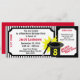 Magic Show Ticket style birthday party invitation in black and white, accented in red or choose colours as preferred.. Customise text to fit your needs.