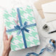 Magic Mint and White Houndstooth Pattetrn Wrapping Paper