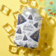This can cooler wrap features a whimsical, seamless pattern of magical Christmas trees with a modern twist. Against a bright white background, the stylised trees sparkle in rich navy blue and gold, creating a sophisticated celestial holiday look. The festive design is complete with the handwritten phrase, "the Magic of Christmas," repeated throughout. Perfect for wrapping your cans for friends and family, this distinctive design is sure to stand out at any Christmas party and bring a touch of winter wonder to any canned drink.