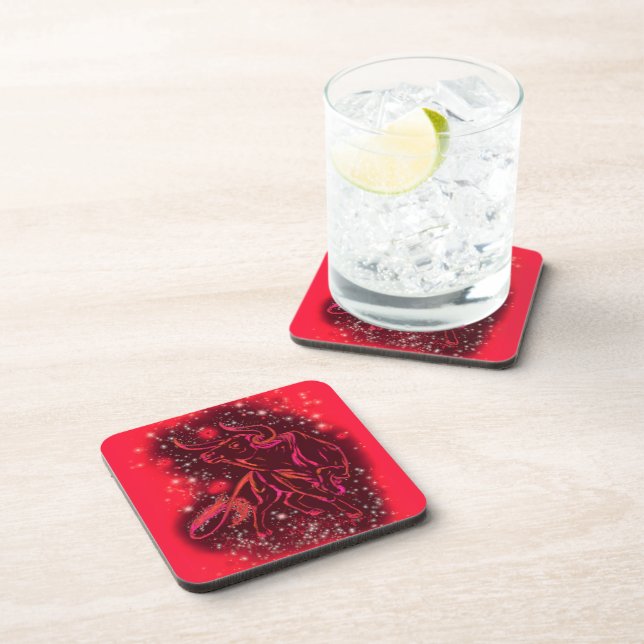 Magic Red Neon Bull Running - Amazing Starry Night Coaster