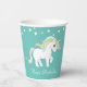 Magic Unicorn and White Flowers on Teal Paper Cups