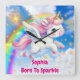 Magic Unicorn Customizable Child's Name Square Wall Clock