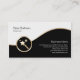 This magician business card features black and white segments separated by a wavy gold strip. An elegant gold icon of a magic wand lies on the lower left side of the design, that's generally suitable for entertainment, party, events, launching, magician, entertainers, singer, shows, concert, dinner themes.