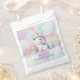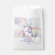 Send guests home with a smile using these magical unicorn birthday party favour bags. Decorated in pink, purple, and yellow pastel tones with a whimsical unicorn theme, these bags are perfect for filling with candy, toys, or small gifts. A matching piece from the unicorn birthday collection.