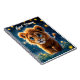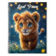 Magical baby lion walking in a fantasy night notebook
