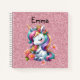 Colourful magical baby unicorn surrounded by flowers is cute on this children’s spiral notebook. On a faux glitter pink background. This book can be personalised with the online tool to add a name, initials or text of your choice. Whimsical design.