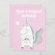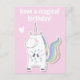 NewParkLane - Cute Birthday Postcard for kids, with a sweet unicorn with rainbow colours, that says: 'Have a Magical Birthday!!', against a soft pink background (colour can be altered), and a text template for personalised message on the back!