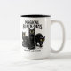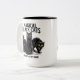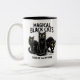 Magical Black Cats two-tone coffee mug design by Banzai Kat. Why settle for a regular security system when you can have three black felines with attitude? This coffee mug features the elite, supernatural guarding team you didn't know you needed. They don't just ward off evil spirits; they also specialize in aggressively judging your life choices, knocking fragile items off shelves to test gravity, and ensuring no ghost ever sleeps through a 3 AM zoomie session. Sleek, sassy, and slightly chaotic—these three black cats are ready to protect your home from bad vibes (and maybe, occasionally, the irritating boy friend). Enjoy your coffee or tea in it to let the world know you are under the protection of the dark side... and it’s very fluffy.