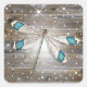 Pretty sparkly blue dragonfly on distressed weathered wood stickers. Cute for sealing baby shower or wedding invitations or thank you notes or candy favour bags.