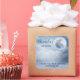 Party thank you stickers with a magical fantasy sky with fluffy blue clouds and a big beautiful moon. 2 white swans flying off together.