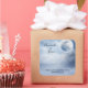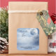 Wedding thank you stickers with a magical fantasy sky with fluffy blue clouds and a big beautiful moon. 2 white swans flying off together.