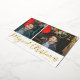 Against a white backdrop, two custom photos take centre stage, allowing you to showcase cherished moments that define your family's holiday joy. Each photo is carefully placed, reminding recipients of the love and togetherness that fill your celebrations. The images come to life against the red background, creating a visual feast that instantly evokes the spirit of the season.