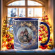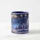 The Christmas season - a time full of wonder, joy, hope, expectations and surprises. This mug features an golden snowflakes swirl in the blue night sky above the winter forest with an image of your family, pet or what you like! Wonderful mug for grandparents! Custom photo and text.