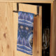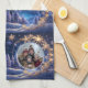 The Christmas season - a time full of wonder, joy, hope, expectations and surprises. This kitchen towel features an golden snowflakes swirl in the blue night sky above the winter forest with an image of your family, pet or what you like! Wonderful gift for grandma! Custom photo and text.