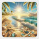 Magical Coastline with Blue Waves and Sea Glass Square Sticker