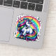 Colourful pink, purple, blue and yellow unicorn with a background of rainbow sparkles. Cute to seal birthday party invitations or to stick on your waterbottle!
