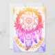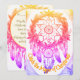 Infuse your holiday greetings with the enchanting charm of a dreamcatcher! This unique Christmas greeting card features a wreath shaped like a dreamcatcher, adorned with vibrant golden hollies and Christmas flowers, gleaming ornaments, and lush golden and blush tone winter leaves twined gracefully around a gradien colored vine. At its heart is a starlike flower set within a delicate circular dreamcatcher web, exuding magical charm. The design is completed with dangling beads and feathers in gradient pink, lavender, and purple tones for a whimsical touch.