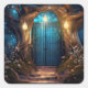 Magical Enchanted Fantasy Forest Old Blue Door Square Sticker